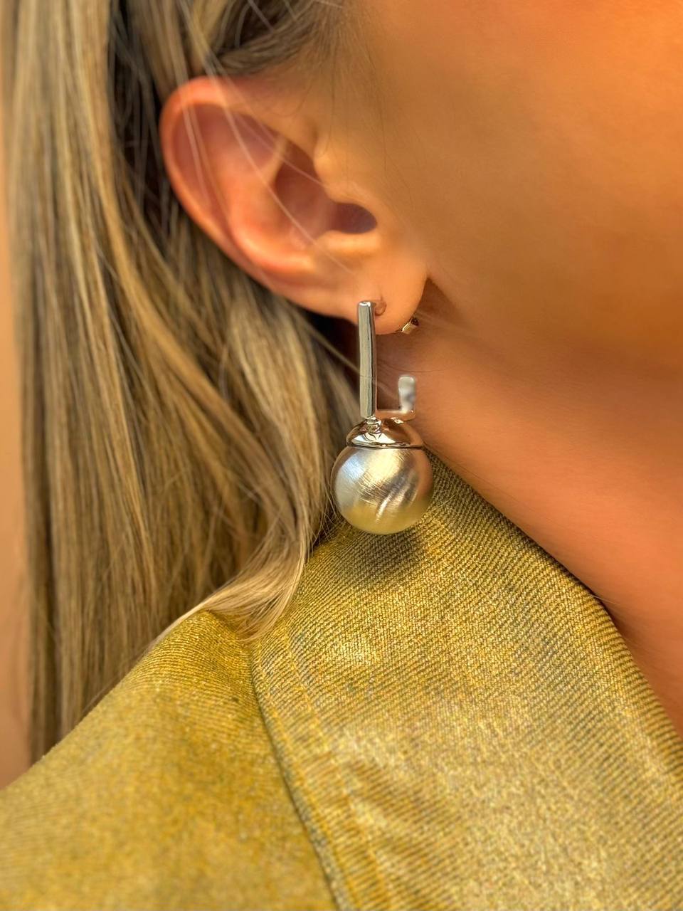 Design contemporâneo e acabamento sofisticado para quem ama acessórios com personalidade. A Argola com Esfera Grande Escovada na Ponta é uma peça elegante e imponente, perfeita para compor looks modernos com um toque de ousadia.