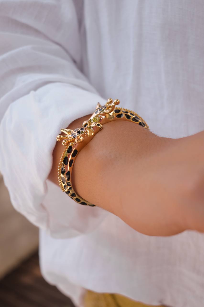 Um toque de estilo selvagem e sofisticado no seu look. O Bracelete Girafa com Detalhes Esmaltados é uma peça autêntica que combina elegância e originalidade em um design exclusivo, inspirado na beleza das savanas.