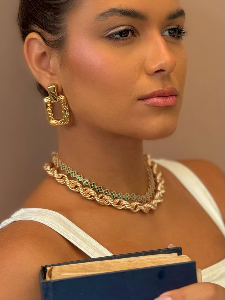 Essa semijoia hipoalergênica é confeccionada em latão de alta qualidade e recebe um luxuoso banho de ouro 18K, garantindo brilho intenso e acabamento refinado. Seu design flexível proporciona movimento natural e caimento perfeito, tornando-o ideal para eventos, festas ou para dar destaque ao look do dia a dia.