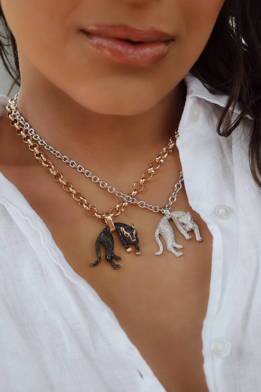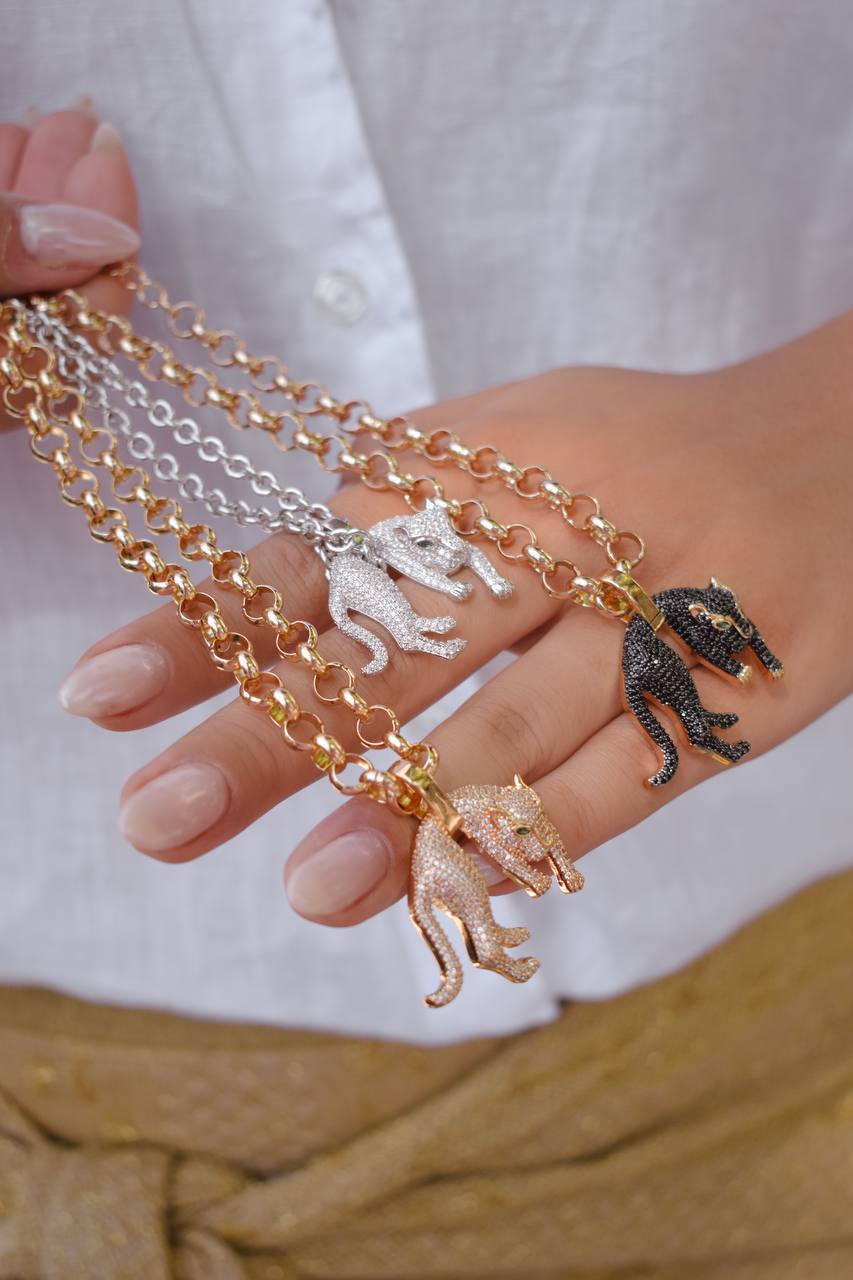 Confeccionado em latão de alta qualidade, essa semijoia hipoalergênica está disponível com banho de ouro 18K ou ródio, garantindo brilho duradouro e acabamento luxuoso. O pingente em formato de tigre cravejado com micro zircônias representa força, elegância e personalidade, tornando o colar perfeito para ocasiões especiais ou para elevar produções do dia a dia.