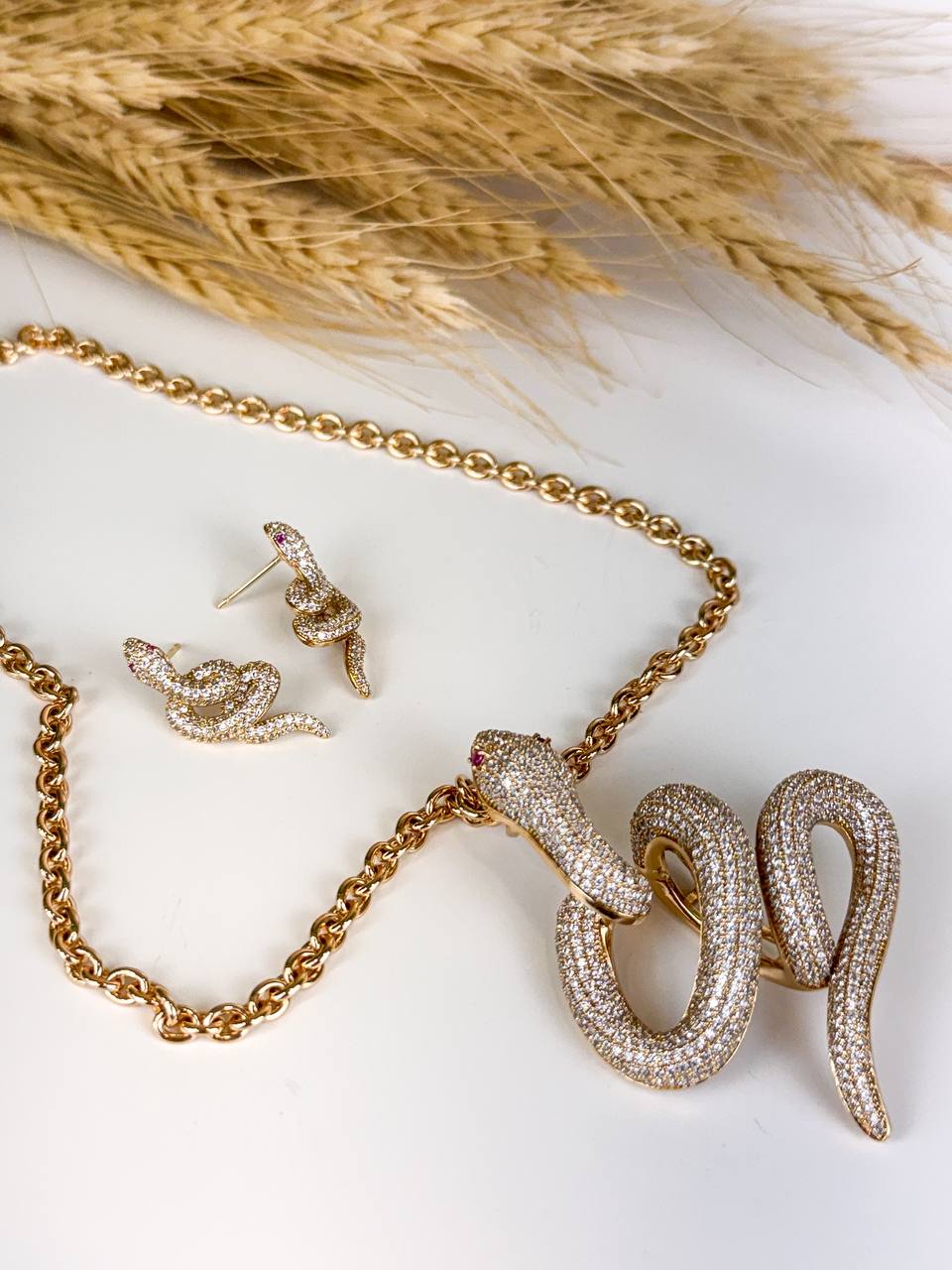 🐍 Design serpente exclusivo: Representando força, renovação e poder feminino, o colar traz a forma da serpente inteiramente cravejada com micro zircônias, proporcionando brilho intenso e acabamento minucioso.